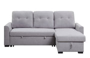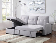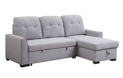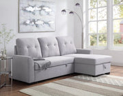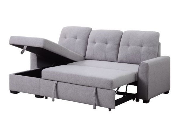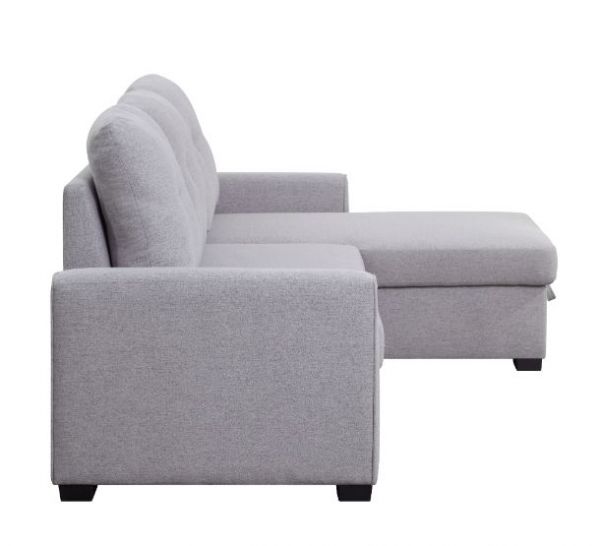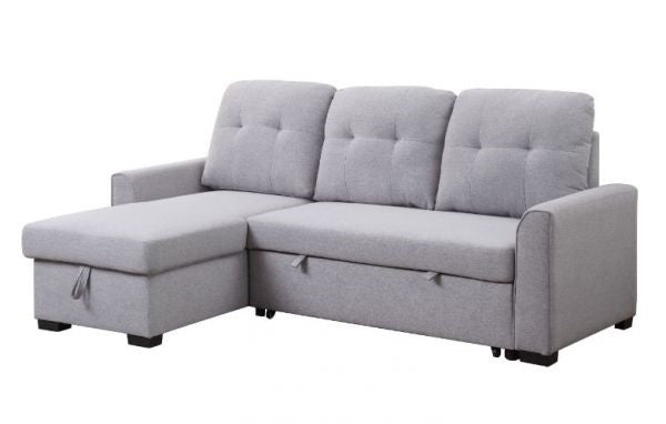 Infuses your living room with modern, clean lines, cozy-style. The Amboise Sectional Sofa incorporates luxe details, neutral tone, and multi-functional designs. Upholstered in a light gray fabric, the sectional sofa offers full-foam seating with buttonless tufted back for an elegant and comfortable look. The reversible configuration comes with a pull-out loveseat sofa bed and storage chaise. Brilliant designs quickly and easily transform a living room into a cozy guest bedroom.Storage Chaise, Loveseat with Pull-Out Bed, Reversible Chaise and Loveseat, Tight Seat and Loose Seat Cushion, Full Foam Seating, Buttonless Tufted Back Cushion