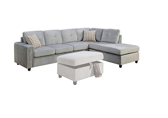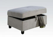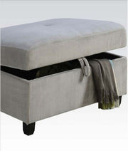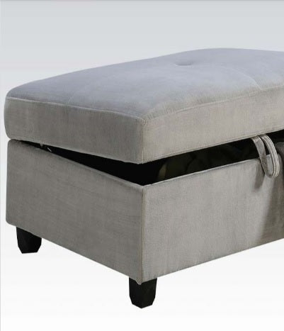 The Belville ottoman is a functional and versatile addition to any living room. Match it with the Belville sectional or mix it with any Decor in your living room. Comes in soft velvet upholstery, easy to maintain, while its storage function allows you to keep home essentials. It's available in beige, chocolate and gray finish. Sectional sofa and ottoman sold separately. Ottoman measures 35"L x 25"D x 19"H. Seat height is 20". Seat depth is 21".