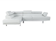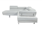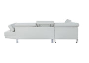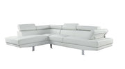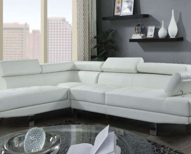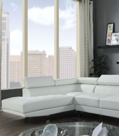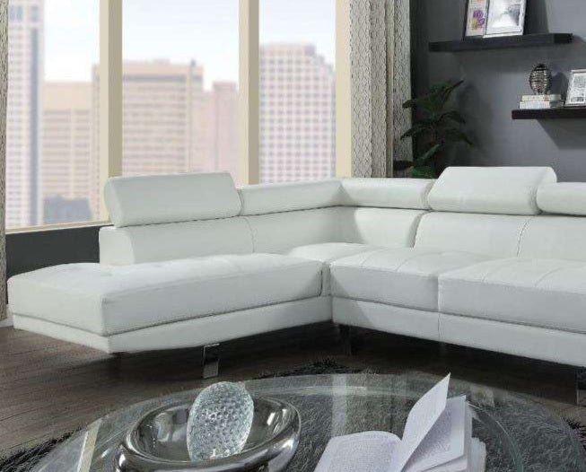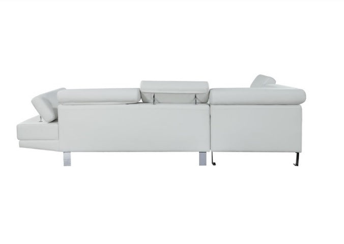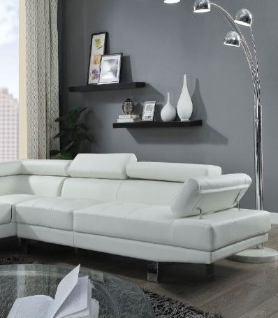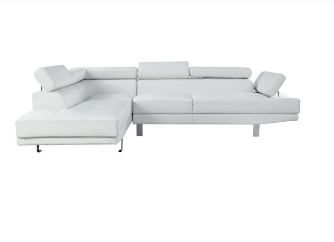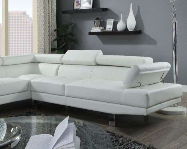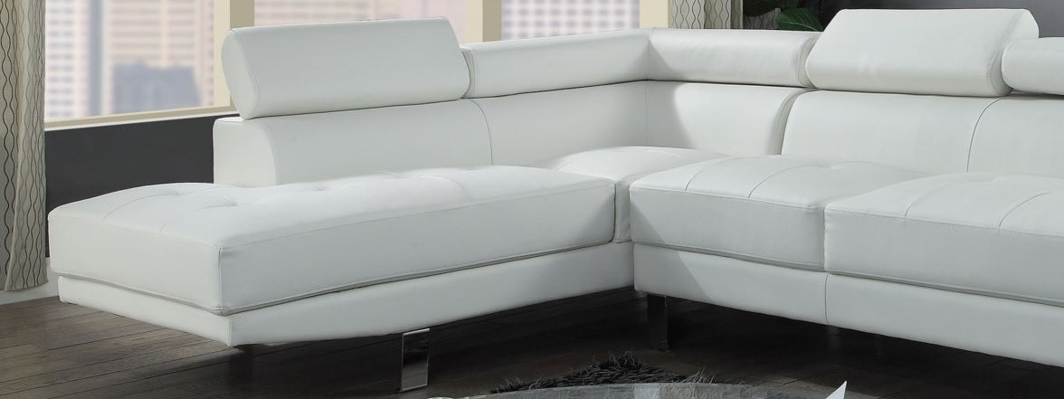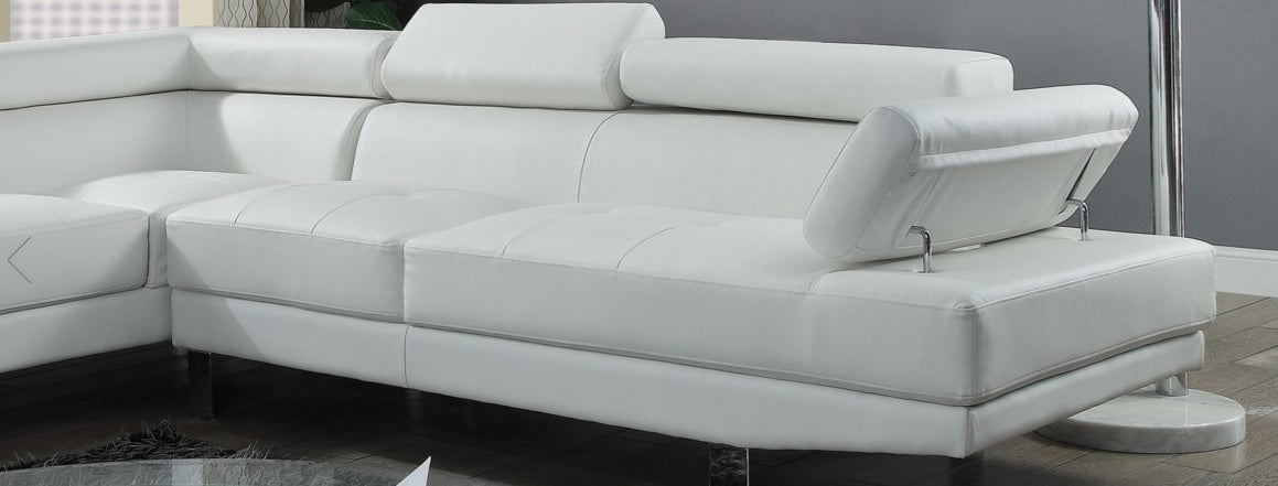 • The Connor contemporary chrome leg sectional covered in black or cream PU is an excellent choice for your living room. The sectional also offers added comfort with pivot headrest that can adjust for people of different heights.