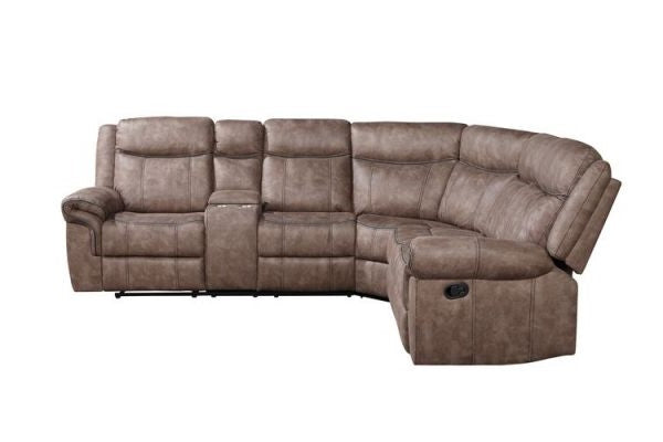 The Dollum collection is ideal for those who seek casual comfort in their home. At a glance, the collection shows off its comfortable design with its plush pillow arms, plush backrests and headrests, and reclining seating. Contrast stitching provides a touch of detailed texture to create visual depth against the two-tone chocolate velvet. The sectional sofa features a console with two cupholders and storage with USB and AC power ports, perfect for your casual home.