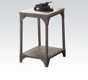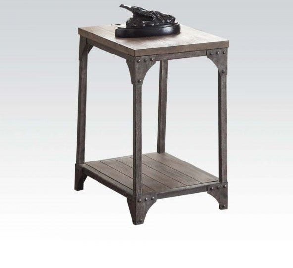 The Gorden occasional table collection create a industrial feel in your living room or seating area, which blends rustic oak finish wood with metal legs for a stylish look. The table also offers a lower shelf for extra storage under the table top. Simple yet unique styling, this end table will become the centerpieces of your living room.