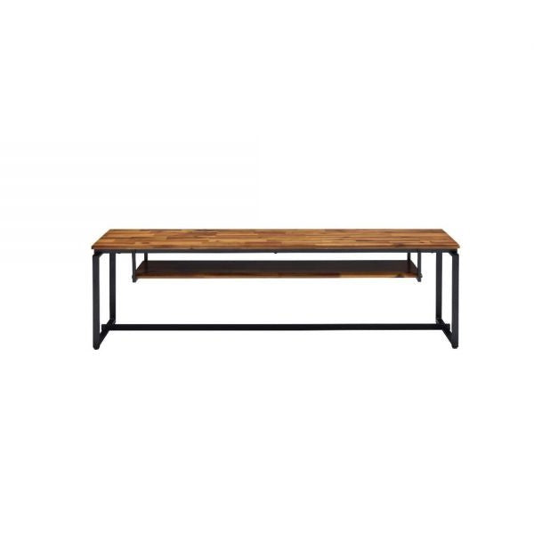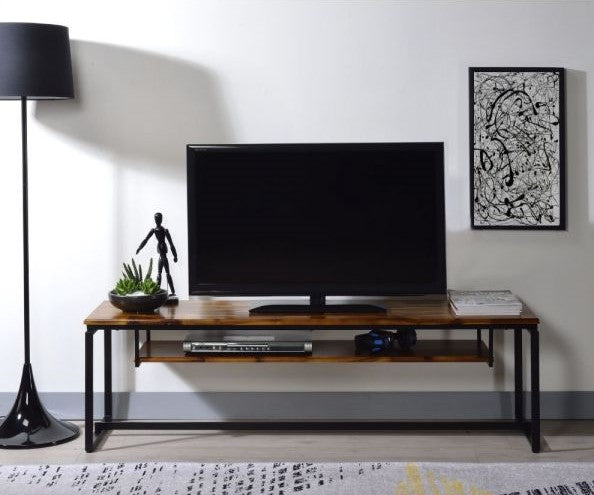 Add a touch of modern flair to your living room with this Kersey TV stand. Expertly crafted from selected wood and metal tube, this piece features a shelf for accommodating a cable box, media accessories or remotes. With the open back design, cables can run through easily. KD, Rectangular TV Stand Storage: Open Media Compartment (1 Wooden Shelf, Fixed) Max.Recommended TV Size: 65-Inch Flat Panel Wooden Top, Metal Sled