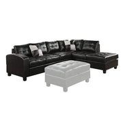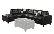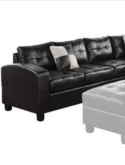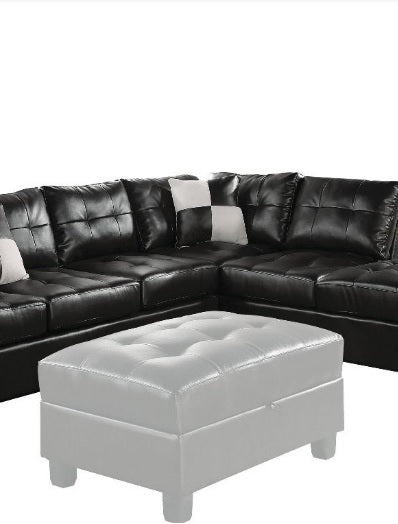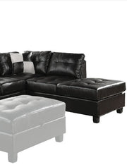 The Kiva contemporary sectional offers contemporary design and amazing style that is sure to please. Features bonded leather upholstery, oversized buttonless tufted seat and back cushions will keep you snug and comfortable. The matching storage ottoman, checkered style accent pillows and wood-like block legs complements the overall look. Available in Black, White and Red finish to choose from.