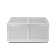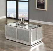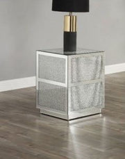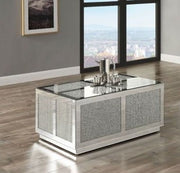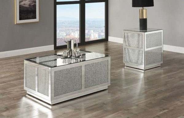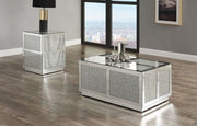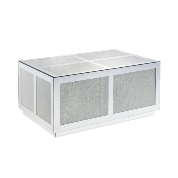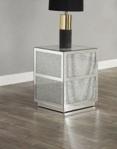 Make your family photos and cherished items the center of attention on this Lavina occasional table. With beautifully crafted beveled mirrors and brilliant faux diamonds, this table screams glamour. The beveled mirrored trim reflects light and enhances the decor of the room. Perfect for your living room, this piece is versatile; the possibilities are endless. This Lavina table will have everyone green with envy.
