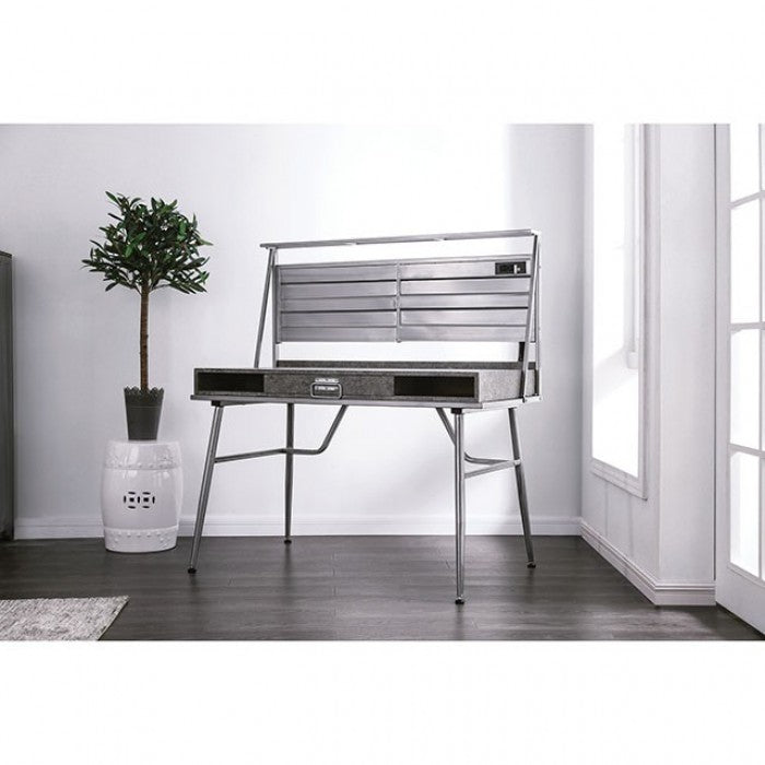 Do away with the concept of a desk and give yourself a rugged work space. This wrought metal desk adds an industrial element to a room. The light corrugation on the back panel, and bucket style drawer pull give a nice touch of detail, but ultimately this desk gets the work done and offers the amenities to you need in your workspace.