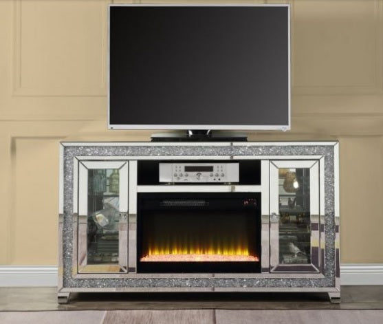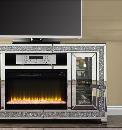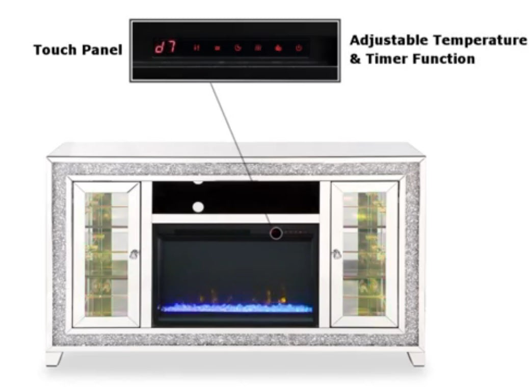 - Material: Fireplace: Plastic+Glass, MDF, Mirror, Acrylic Diamond