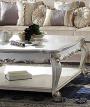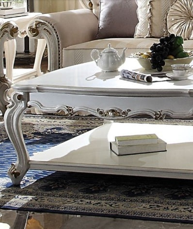 Inspire your home and create an upscale atmosphere with the Picardy occasional tables. This collection table adds classic style to any sitting area featuring a traditional handcrafted design. This luxurious features include solid wood frame in antique pearl and gold brushed finish, this collection is guaranteed to be the highlight of any home.
