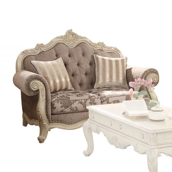 • The Ragenardus collection harmonizes traditional details with functional design to accommodate today's styles. This sofa set features tight seat and back cushion, crown and raised scrollwork ornamental trim and button tufted backrest. Accent pillows are also included to make your living room more splendid. Choose from antique white finish or vintage oak finish with its matching occasional tables, this collection will create an elegant and fabulous living room environment for your home.
