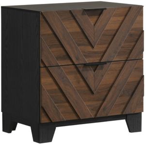 This bedroom collection captivates with its modern elegance and striking geometric patterns. Crafted from rich wood tones and plush upholstery, it offers a perfect blend of style and comfort. The bed features a uniquely tufted headboard that commands attention, complemented by matching nightstands and dressers with sleek hardware for ample storage.Read More