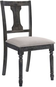 Urban color palettes and rustic designs play off of each other so well. A weathered gray finish gives that modern hue but with a touch of age to blend perfectly with country styled turned legs and a classic fiddle back chair design play on the feelings of a rural aesthetic.