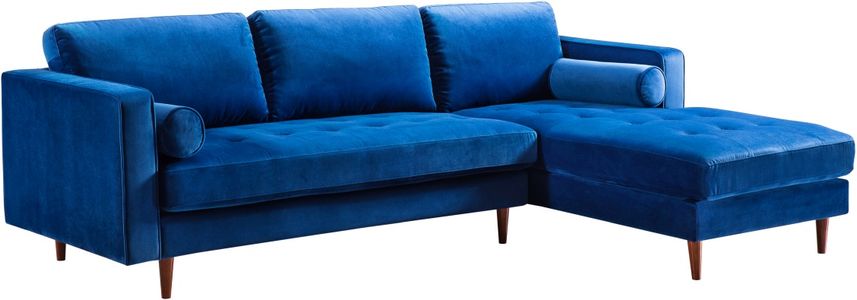 The beautiful mid-century designed Como sectional offers relaxation and style. Featuring removable cushions upholstered in sumptuous velvet, this handsome sectional is available in multiple color options and either RAF or LAF configuration.
