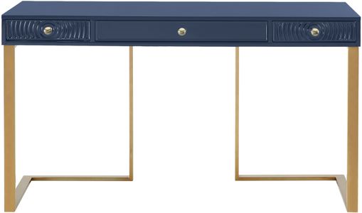 The Janie desk is fashionable for your office. With three convenient drawers, staying organized is super simple. Featuring a lacquered wooden top, clear acrylic handles and a geometric gold base your workspace will be as trendy as you are.