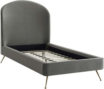Modern glam is beautifully epitomized in the elegant curves of the Vivi bed. Boasting a dramatic silhouette and gold glamorous legs that pop against the textured velvet upholstery, it demands attention. Available in Twin, Queen and King sizes and multiple color options.Read More
