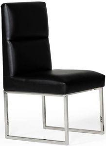 The Carla Dining Chairs have a minimalistic modern look that is sure to pair with any contemporary home. Stainless-steel accents and black vegan leather adorn the stylish, angular silhouette of this modern chair. Pair with a cowhide rug and live edge wood table for the perfect dining experience.Read More