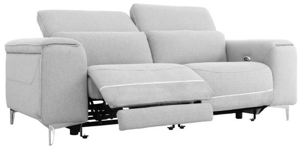 The stylish and modern fold over arms of the Cyprus Sofa creates dimension and texture on this stylish piece. This contemporary sofa is upholstered in a grey water resistant fabric and offers two electric recliners to offer ultimate comfort.Read More