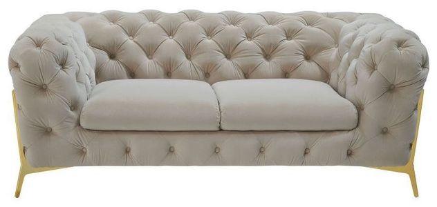 The quincey beige loveseat is a beautiful transitional, glam piece that can be used in different design settings; glam, transitional and contemporary. The loveseat is upholstered in beige velvet fabric, with overstuffed back and arms in a tuxedo style with diamond button tufting.Read More