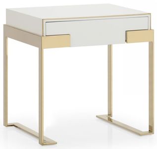 The champagne gold legs of the Adonis nightstand extend into long slim support systems and clamp around the white high gloss drawer top. This glam modern look pairs perfectly with so many beds and can be used in almost any style.Read More