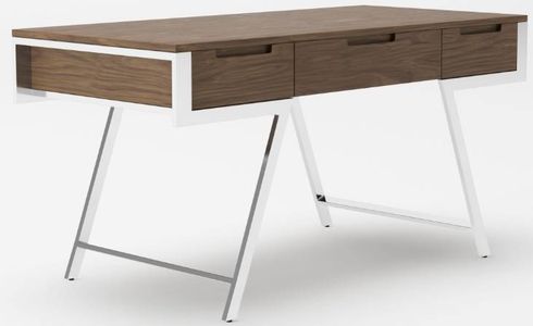 The Dessart Desk has a large tabletop for artists or someone that needs space to lay out their work. The natural American walnut veneer and exposed stainless steel legs make this modern desk a great addition to an office. It has three drawers and loads of legroom.Read More